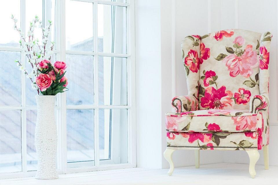 Так, в классическом интерьере, неважно это строгий английский стиль или нежный прованс, будут отлично смотреться небольшие, но яркие цветы, которые могут быть изображены на обоях, текстиле (шторах, подушках, покрывалах и т.д.), фарфоровой посуде, вазах и даже мебели, причем не только в качестве обивки диванов и кресел, но и резных украшений деревянной мебели. Хорошо будут сочетаться с такими цветочными принтами и живые, настоящие цветы – они дополнят общую картину и привнесут настоящую весну в ваш дом.