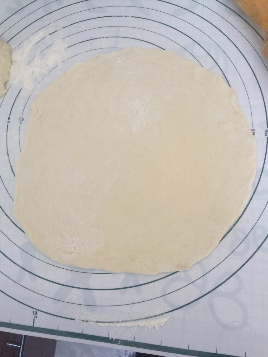 Тесто делим на 4 части. Берем одну часть теста и раскатываем его.