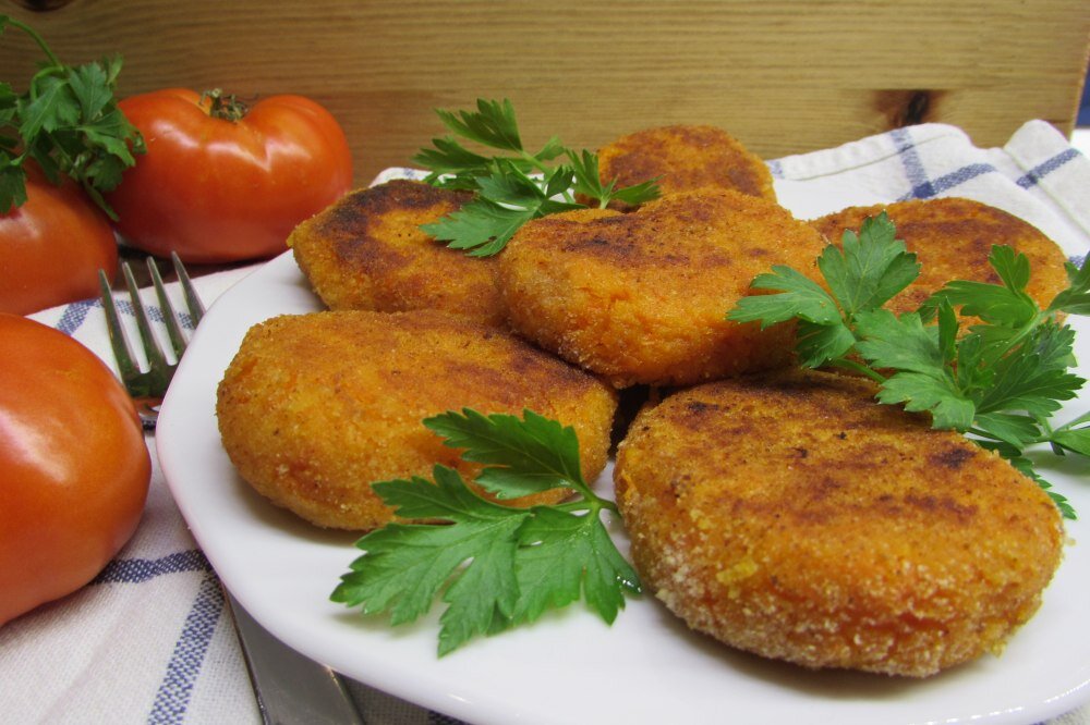 Очищенную морковь порезать ломтиками или соломкой, положить в кастрюлю и залить горячим молоком, добавить столовую ложку масла, сахар, соли , накрыть крышкой и тушить до готовности на среднем огне, помешивая чтобы моркови не пригорела. Когда морковь будет готова, посыпать её манной крупой и помешивая варить на слабом огне 8-10 минут. Затем морковь снять с огня, положить яичные желтки и хорошо вымешать и охладить. Из охлаждённой массы приготовить котлеты, смочить яичным белком,обвалять в сухарях и обжарить с обеих сторон .