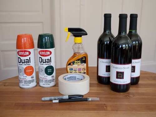 Как вы уже, наверняка, догадалиь, Хэллоуин и декор — две неразлучние вещи. Перед тем, как приступить к главным манипуляциям с бутылкой вина, её нужно за ранее с этой целью приготовить. Конечно, прежде всего, нужно избавиться от ненадобной этикетки. Самый обычный метод – это поставить бутылку вина в ведро с водой на несколько часов. Так намного легче будет снять бумагу, а при помощи растворителя снимем остатки от клея. Наша бутылка готова к предстоящим тестам.