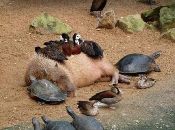 Капибара это очень милое животное , которое умеет дружить со всеми животными и даже с крокодилом,ну чтож предстовляем вашему вниманию топ фото с Капибарой.