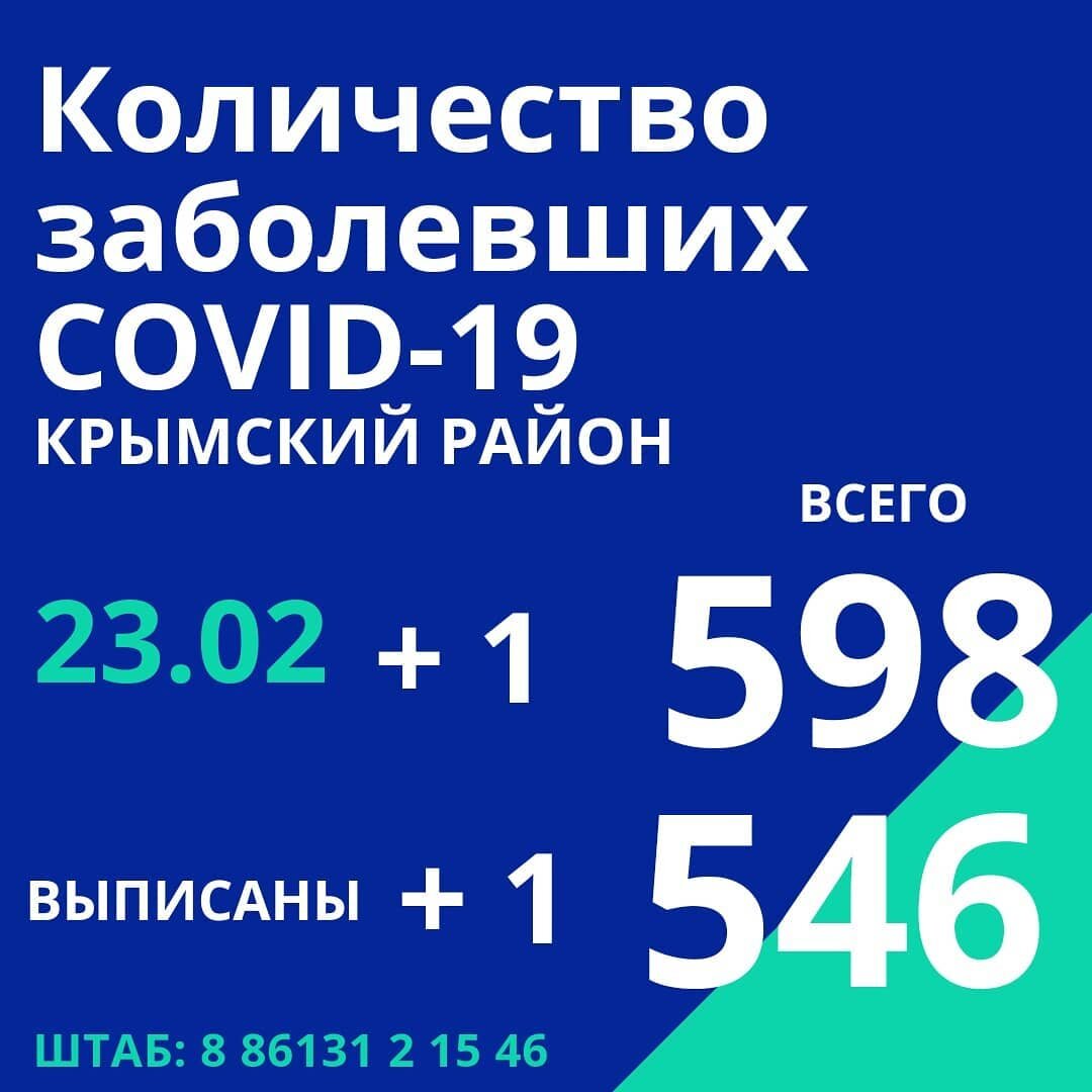 Сегодня по информации оперативного штаба Краснодарского края в Крымском районе один новый случай заражения коронавирусной инфекцией. Один пациент готовится к выписке. По официальной статистике - у нас в районе за все время зарегистрировано 598 заболевших.⠀⠀
