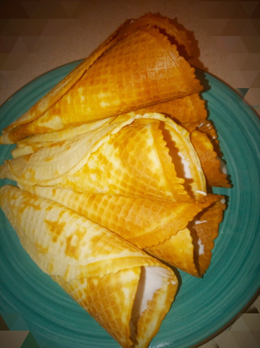 К моей электровафельнице "Василиса" в комплекте было несколько рецептов теста. Но ни один из них не оказался на все 💯 подходящим. Поэтому экспериментальным методом модифицировала как технологию приготовления, так и исходные продукты. Из этого количества у меня получается 15 трубочек.