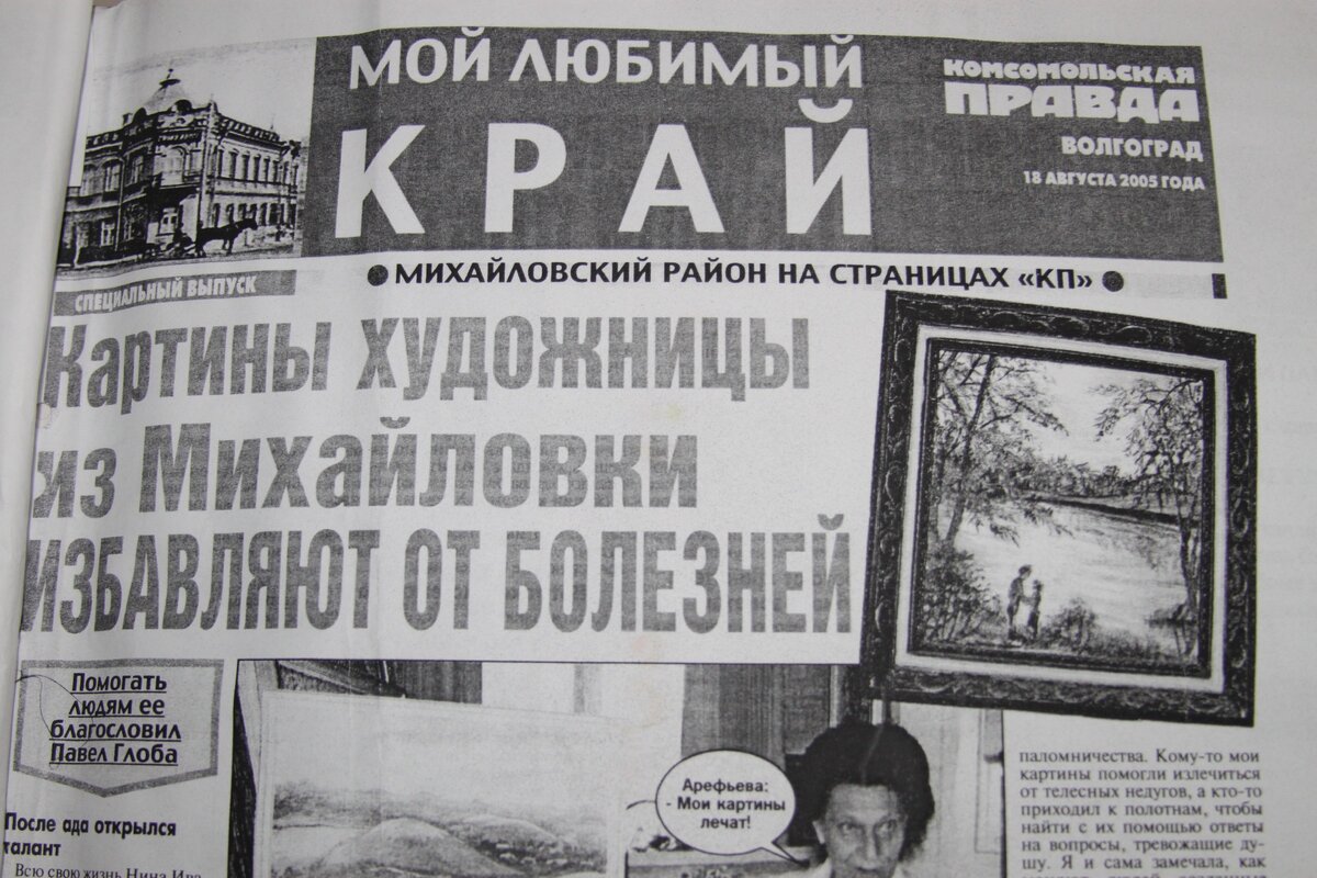 Нина Ивановна Арефьева родилась 25 августа 1934 года в х. Титовка Алексеевского района Волгоградской области. С 1958 года живет и работает в г. Михайловка. Уникальный художник и поэт. С 1985 года ею создано около двух тысяч живописных произведений. Проведено более 100 выставок в городах: Михайловка, Волгоград, Краснодар, Владимир, Суздаль, Ломоносов, Москва, Санкт-Петербург, а также выставка в Болгарии. Во время персональной выставки во Владимиро-Суздальском музее-заповеднике ее работы были проданы в 18 стран мира.