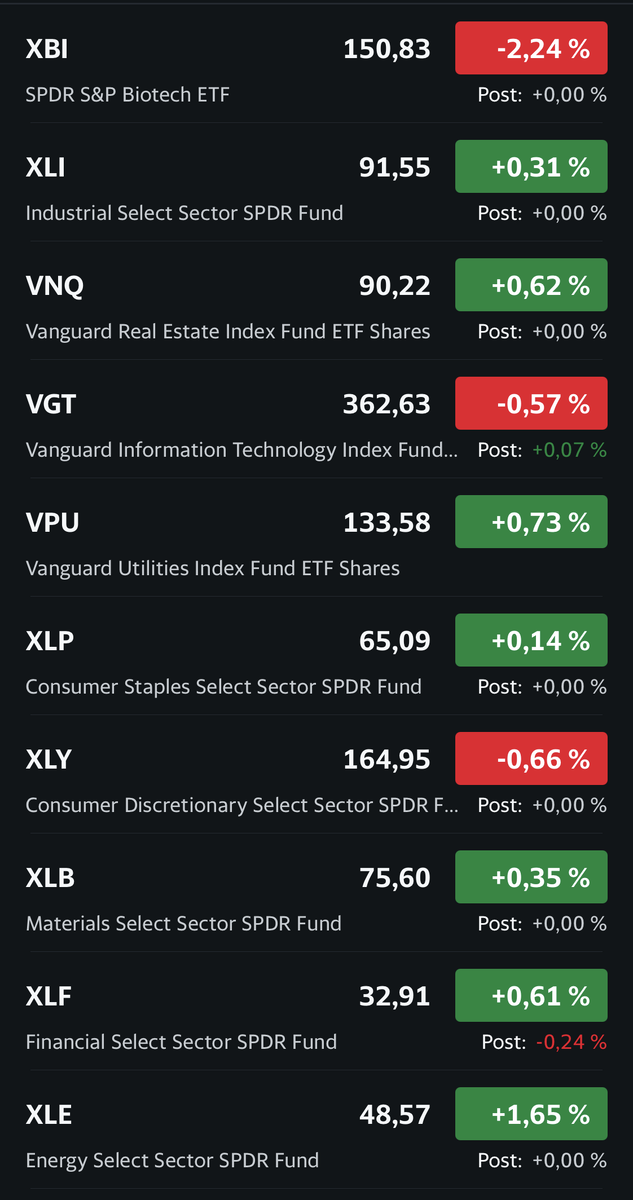 S&P500 к вечеру даже сумел немного подрасти(0,13%). А вот внутри индекса по секторам картина очень интересная.