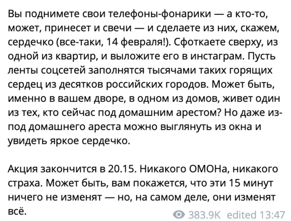 Леонид Волков подкинул идею остальным сторонникам Навального провести 14 февраля флешмоб с зажженными фонариками. Навальнята предполагали, что акция получит массовое распространение, однако единственное, что обеспечило массовость хэштега #ЛюбовьСильнееСтраха – раскрутка при помощи бот-аккаунтов, созданных в январе-феврале 2021 года.