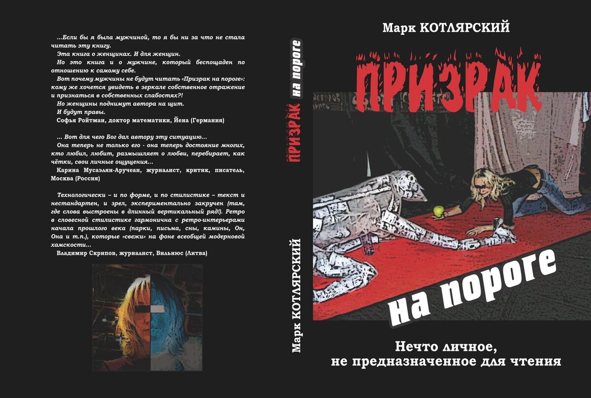 Жанр книги Марка Котлярского определить нелегко; в подзаголовке значится – «мозаичный роман», но роман предполагает целостность сюжета; здесь же сюжет скрыт, как подземный родник, время от времени лишь выходя на поверхность, а затем вновь скрываясь. Если говорить проще, то «Призрак на пороге» - это история любви: от возникновения до крушения, но история, пропущенная не через цельную фабулу, а