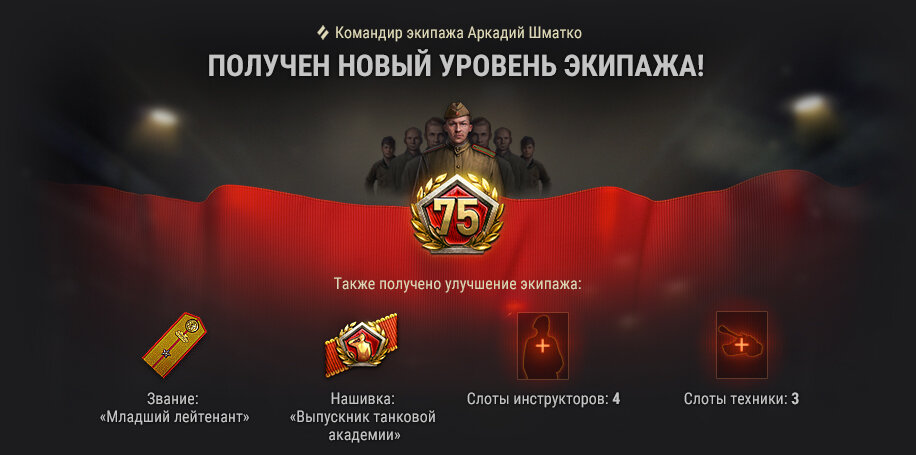Созданный новый экипаж будет автоматически и бесплатно обучаться на технику. Переобучение же будет бесплатным только до 10-го уровня Экипажа.