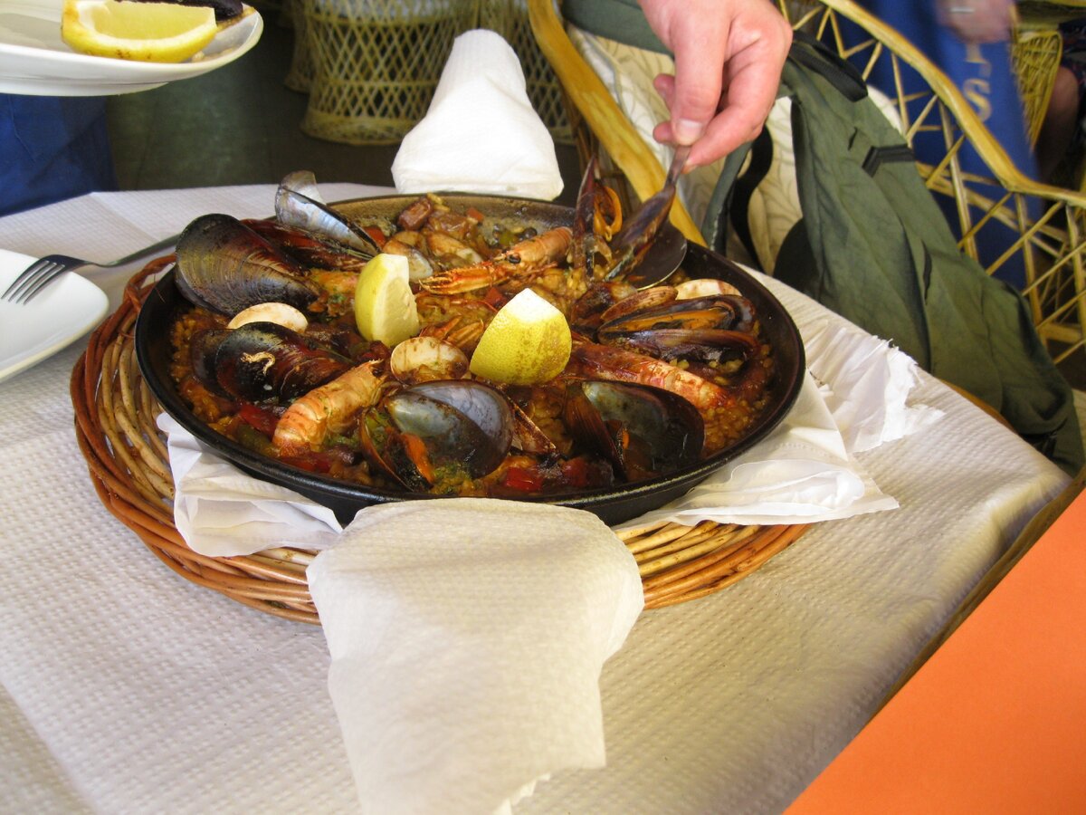 На третий день я пошел в ближайшее кафе и заказал паэлью. Официант по-английски сказал, что блюдо будет большое. Я сказал, что я в курсе. Официант ушел, а все посетители кафе уставились на меня. Я знал, что паэлья – это рис, подкрашенный шафраном и с добавлением оливкового масла. Я заказал микс (морепродукты и курица). В принципе паэлья блюдо соседней провинции Валенсия, но теперь оно модное и готовят во всей Испании. Короче некий испанский вариант плова. Я удивился реакции посетителей кафе, которые уплетали бифштексы и картошку фри.