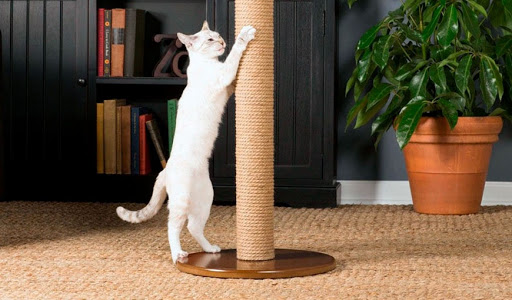 1) Когтеточка. Это самый распространенный вариант решения проблемы с точением когтей. В идеале столб когтеточки должен быть сделан из прочного материала, например, из мешковины или веревки. Таким образом когтеточка сможет прослужить дольше и, как правило, такой материал является для кошки более привлекательным, чем мягкая обивка мебели. Живя в дикой природе, кошка также использует для точки когтей жесткие поверхности, например, кору деревьев.