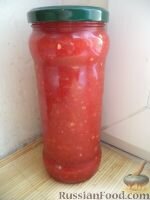 Домашнюю аджику перекладывают в стеклянную посуду, закрывают крышкой (можно полиэтиленовой) и помещают на всю зиму в холодильник. Хранить аджику следует с холодном месте, иначе прокиснет.