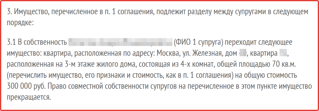 Данное соглашение является основанием для прекращения права общей совместной собственности супругов на имущество, указанное в п. 1 соглашения.