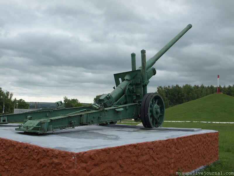 В качестве Оружия Победы у кургана установлена советская 122-мм корпусная пушка образца 1931 года (А-19).