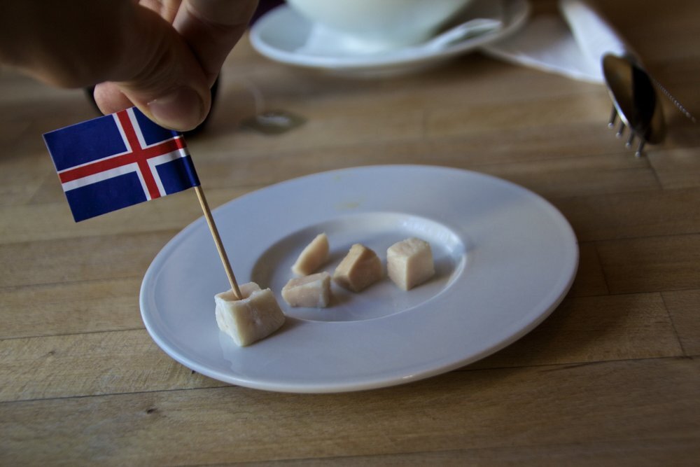 Размер порции 15 г. Время приготовления составляет примерно 7 месяцев. В течение долгого времени акула была любимым блюдом исландцев не только из-за ее отчетливого острого вкуса, но и из-за пользы для здоровья, связанной с ее употреблением. Сегодня акула считается для многих исландцев главным деликатесом, незаменимым на традиционных застольях, желательно запивать ее сладким напитком -