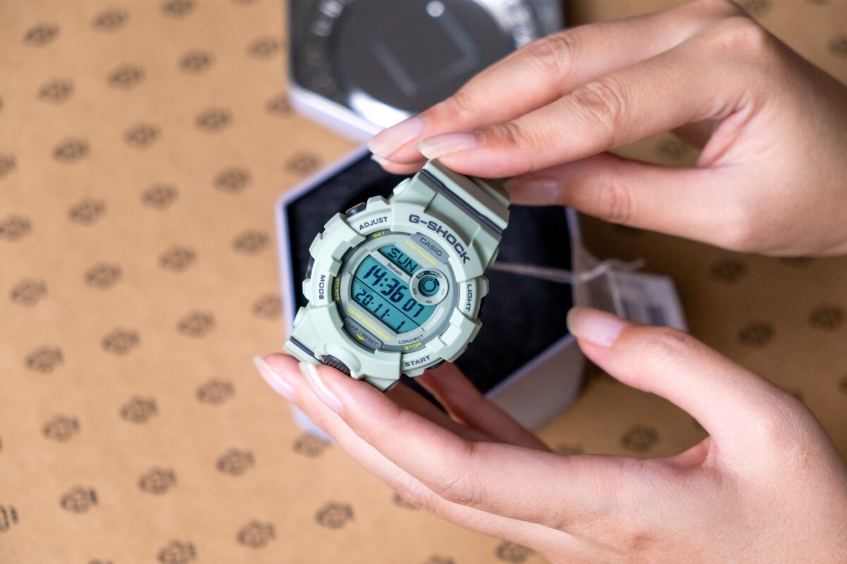 Если у вас уже были "джишоки", то внешний вид мало вас удивит. Стоит заметить, что сам производитель предлагает эту модель как более женскую из-за меньших размеров. Да, она сидит неплохо на тонком женском запястье, вот только с ремешком немного просчитались и он в итоге торчит нелепо. Видимо, придётся отрезать часть, если эти часы будет носить ваша вторая половинка. Честно скажу, что для мужчин они тоже очень неплохи, как раз вследствие небольшого корпуса. Не всем нужны огромные "котлы", которые будут торчать на руке.
