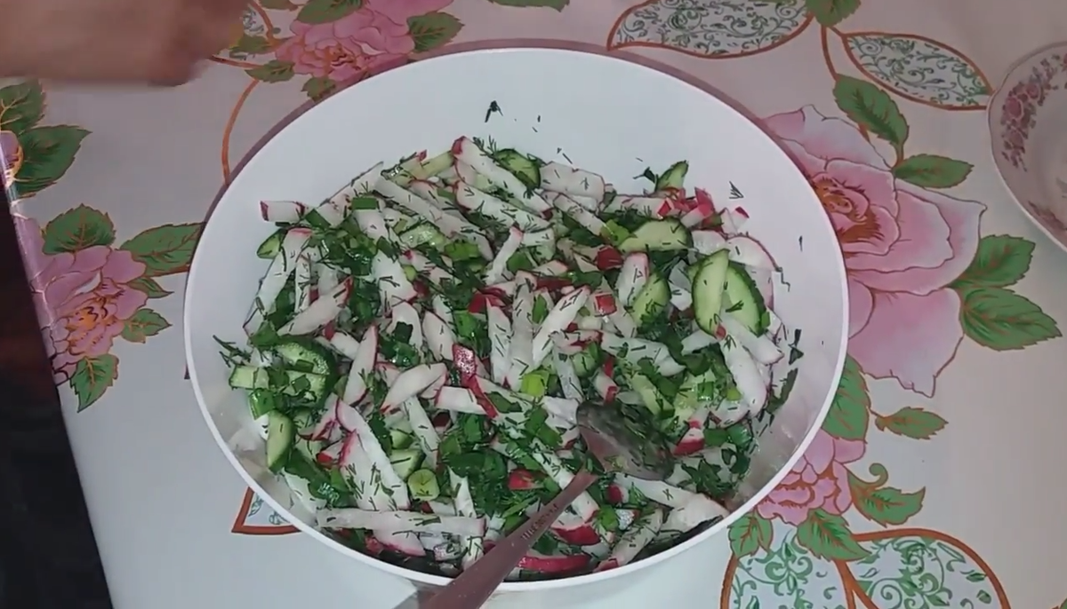 В летнее время по традиционному баварскому рецепту можно приготовить великолепный витаминный салат из огурцов с редькой и редиской.