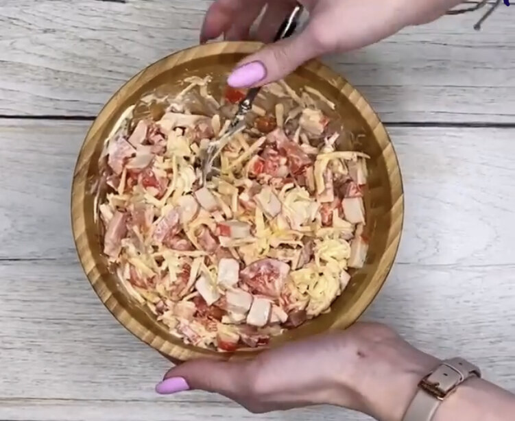 - Нарезаете, смешиваете, заправляете майонезом и наслаждаетесь.