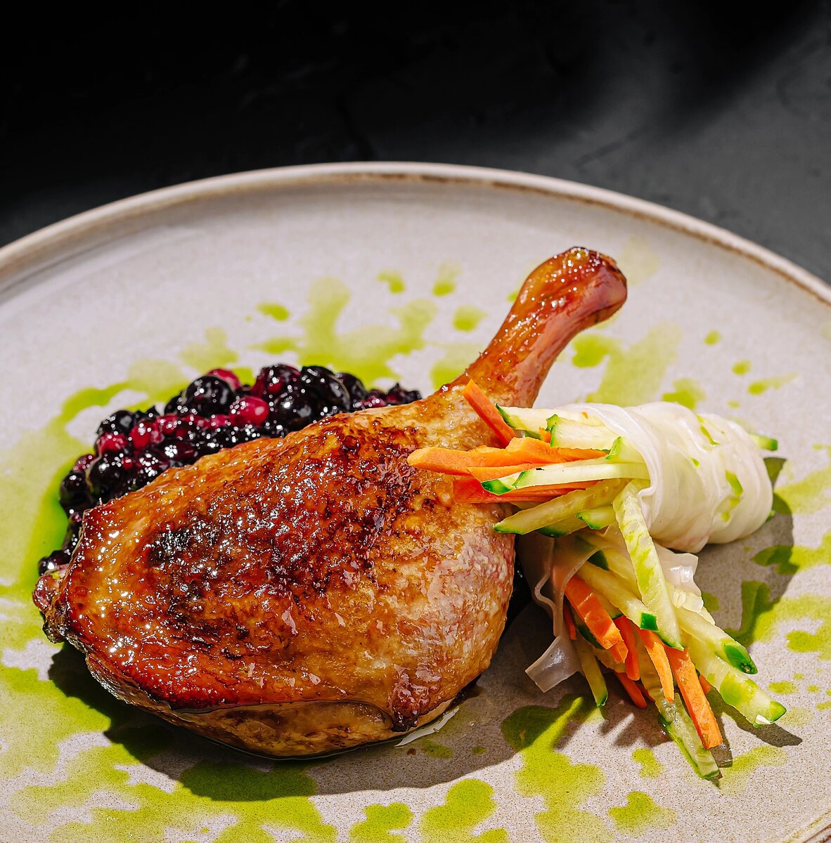 Вы любите утятину? Надеюсь, что да, поскольку этот выпуск посвящаю ей, а точнее некоторым идеям блюд с ее участием. Доводилось ли Вам когда-нибудь пробовать салат из запеченной утиной грудки, адыгейского сыра, сладкой груши, грецких орехов, кураги, вяленой клюквы и зелени рукколы? Все перечисленное заправляется смесью оливкового масла и свежевыжатого апельсинового сока с апельсиновой цедрой и чуточкой горчицы. О подобном блюде я узнал от одного знакомого: тот сделал его на Новый год и остался вполне доволен. По его словам, сочетание ингредиентов любопытное. Рекомендовал.