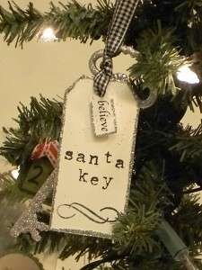 Вырежьте из картона маленький прямоугольник. Оформите его по собственному вкусу и сделайте надпись «Ключ для Деда Мороза». Я сделала свои буковкы при помощи штампов.