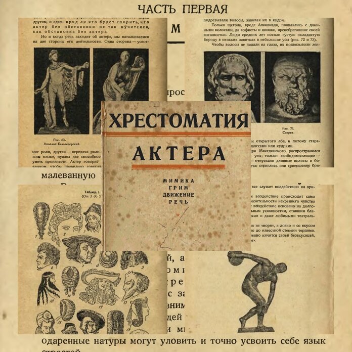 Редкая, сейчас, книга по гриму, мимике, движению, речи была выпущена в 1930 "Теакинопечать" для будущих актеров и для всех интересующихся. Сборник составлен по книгам и статьям: С. Волконского, Дельсарта, Коклена, Лебединского, Ленского, Станиславского и др.