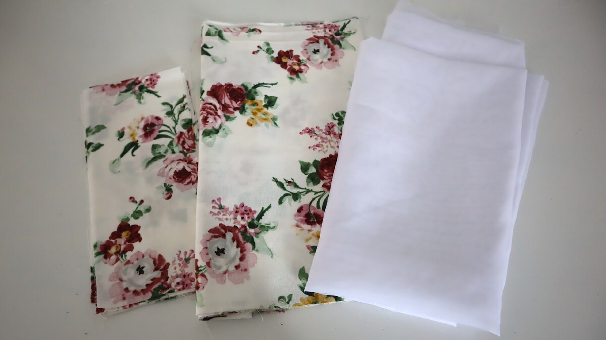 Мне понадобились ткань с розами на белом фоне и белый тюль. Все это добро осталось от предыдущих штор.