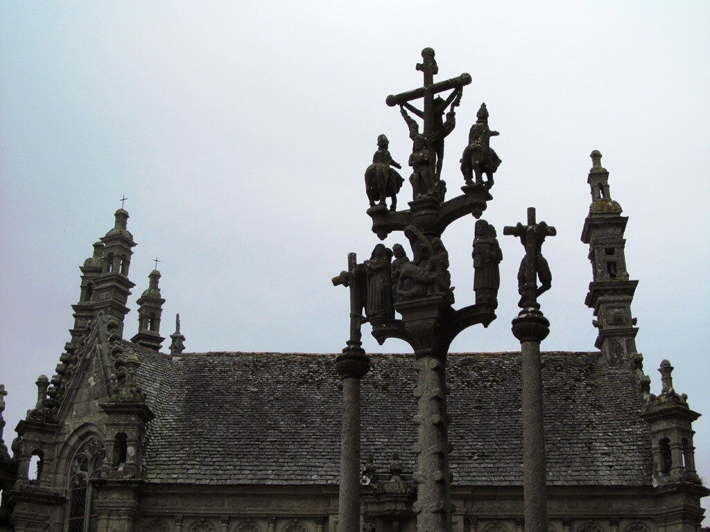 Нигде больше я таких церквей не видела. А когда писала про них, то нашла вот такой ответ в ЖЖ: «Разные источники говорят, что голгофы встречаются от Бельгии до Галисии, но при ближайшем рассмотрении оказывается, что Голгофа вблизи бельгийского Ипра перенесена из Бретани, а голгофа в Лурде является даром бретонских епархий. Остается Галисия, которая также гордится кельтскими традициями, и в народной музыке заметно сходство бретонской и галисийской, но там это скорее кресты с одной парой фигур. Так что такие многофигурные композиции можно смело считать явлением уникальным для Бретани и прежде всего её западной части. А вот восходят они похоже к крестам, которые воздвигали на перекрестках и в разной мере украшали. Особенно знаменита этими крестами Ирландия, но и в Бретани их было множество. А сами эти кресты продолжают традицию менхиров, которых тоже множество в кельтских землях, а в Бретани особенно».