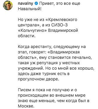 Для начала хочу напомнить вам о том, что Алексей был задержан 17 января сразу после возвращения в Россию из Германии, где проходил курс восстановления после отравления. Оказавшись на родине,