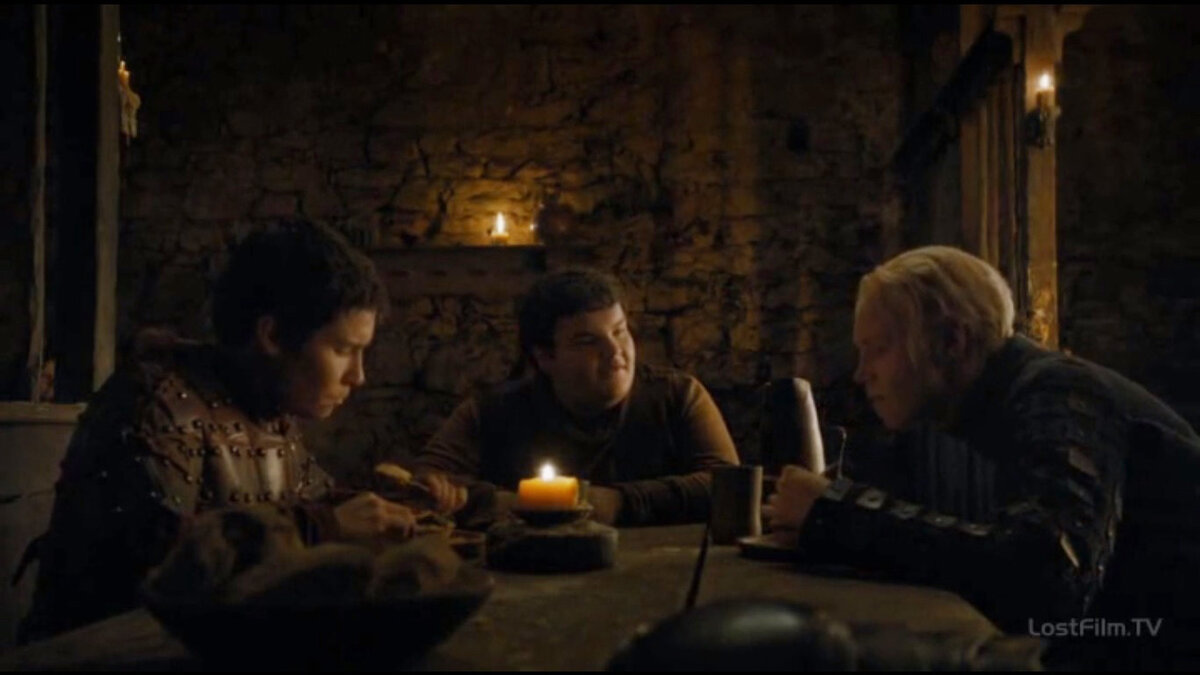 Бриенна Тарт и Подрик Пейн останавливаются в гостинице на перекрёстке пообедать (у Подрика с готовкой не очень получалось - пытался зажарить зайца вместе со шкурой :). Повар по прозвищу Пирожок готовит для них пирог с почками. Он подробно рассказывает о секрете приготовления этого блюда: важно уметь готовить говяжьи почки и правильно приготовить соус.