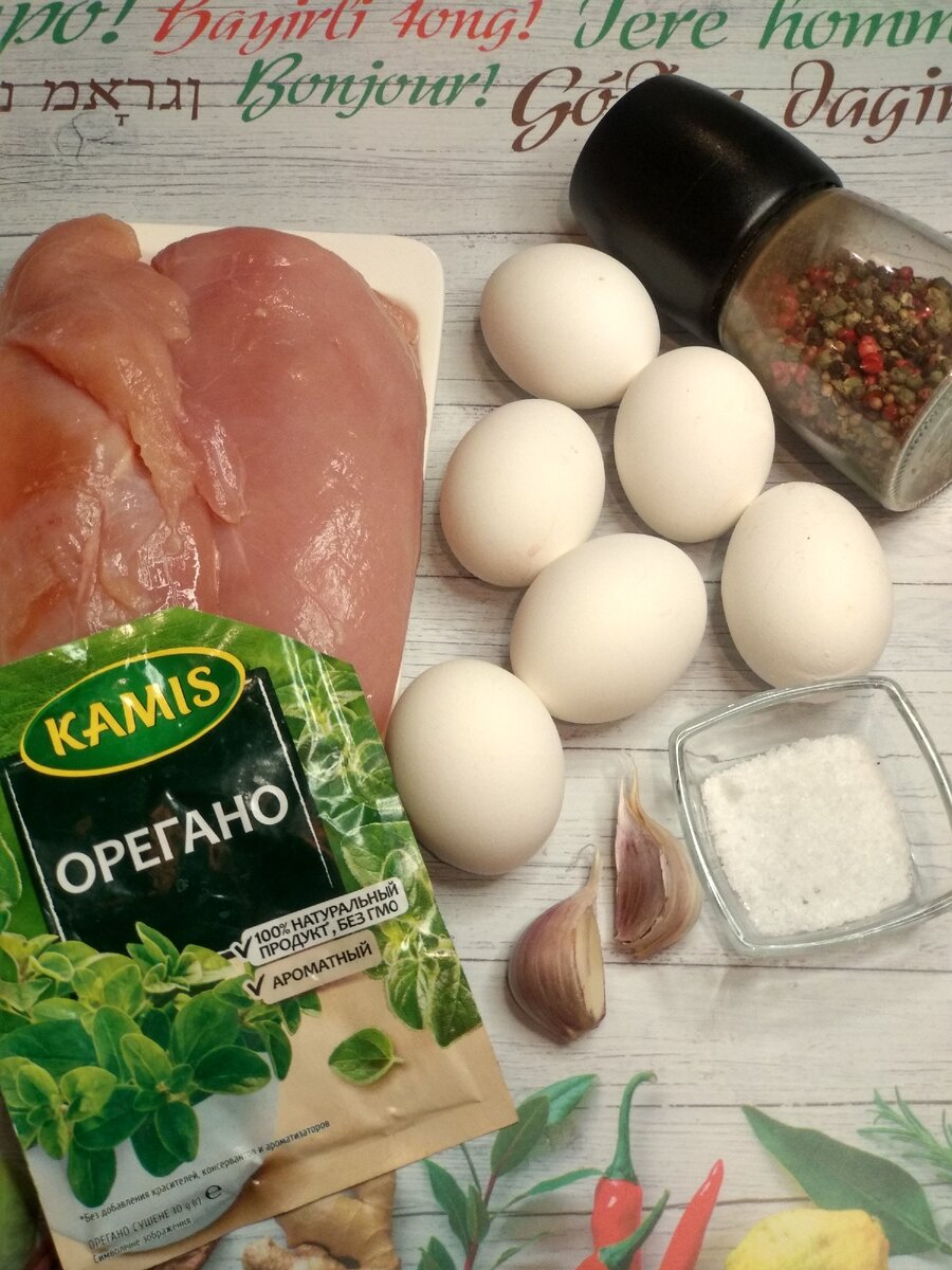 1. Куриную грудку обмываем и разрезаем на тонкие стейки (6 штук).