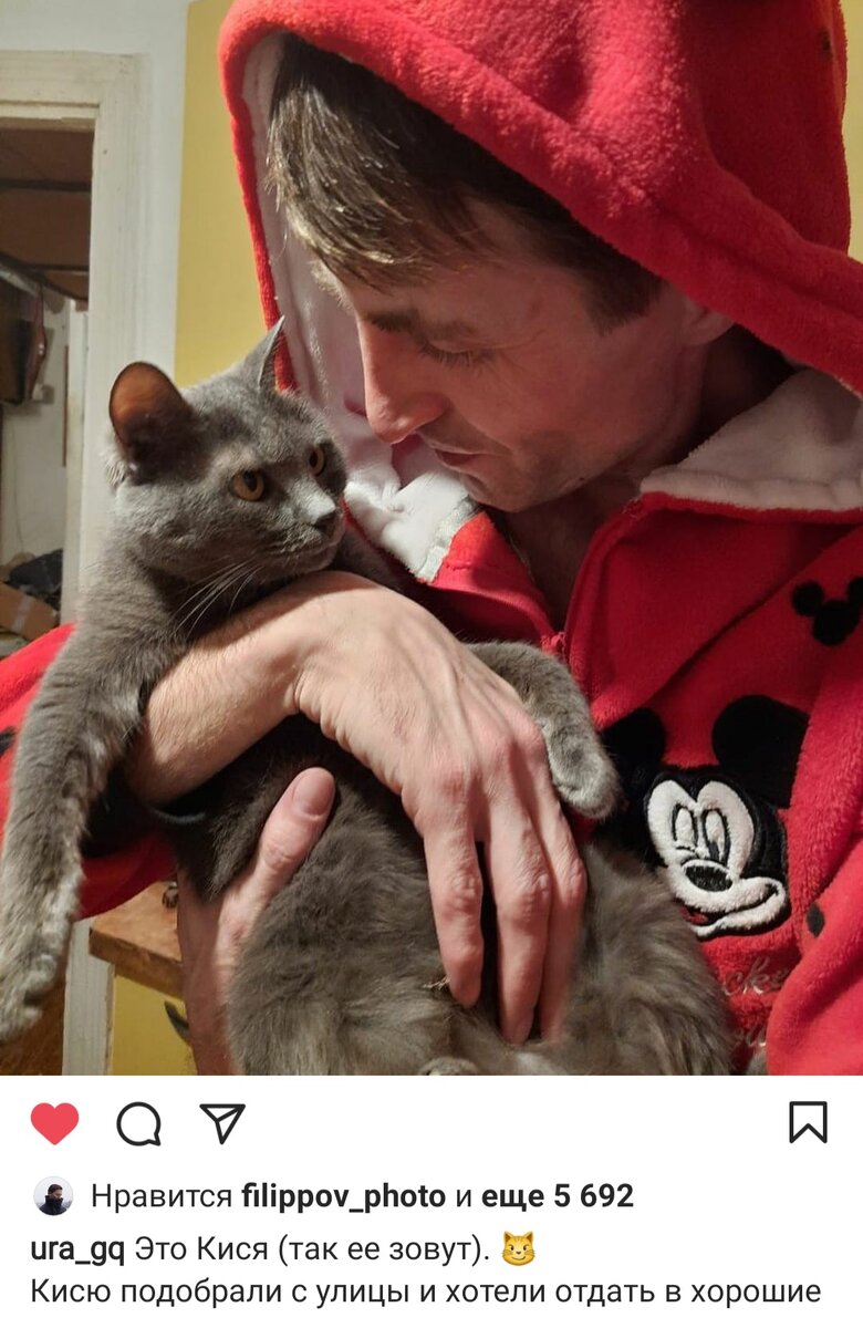 Юрий теперь живет не один - кошку по кличке Кися он нашел на улице. Хотел отдать в добрые руки. Но самые добрые оказались у него... Да и привязался к ней! Поэтому решил оставить у себя.