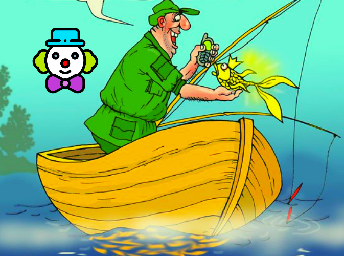 - "Ну ладно, Рыбка, у меня сегодня хорошее настроение. Загадывай давай своё желание!"