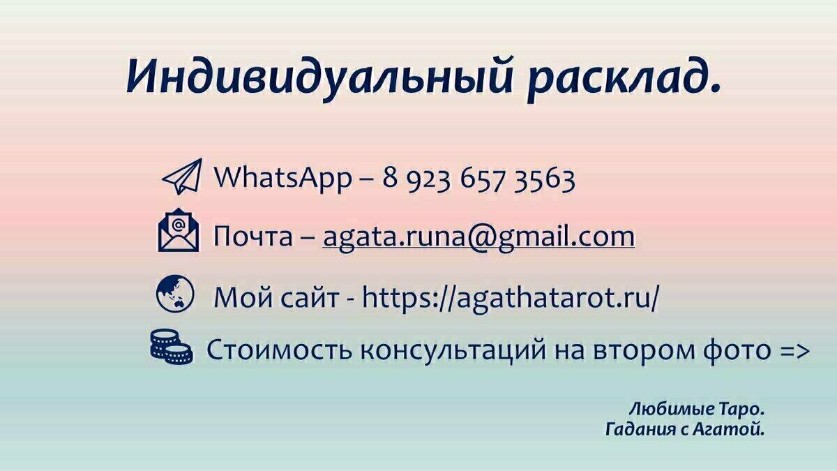 Расклад делала в единственном варианте, но по нему можно понять - ваш он или нет. Но все же, помните, РАСКЛАД ОБЩИЙ- хотите личный расклад, пишите мне или заходите ко мне на сайт =>