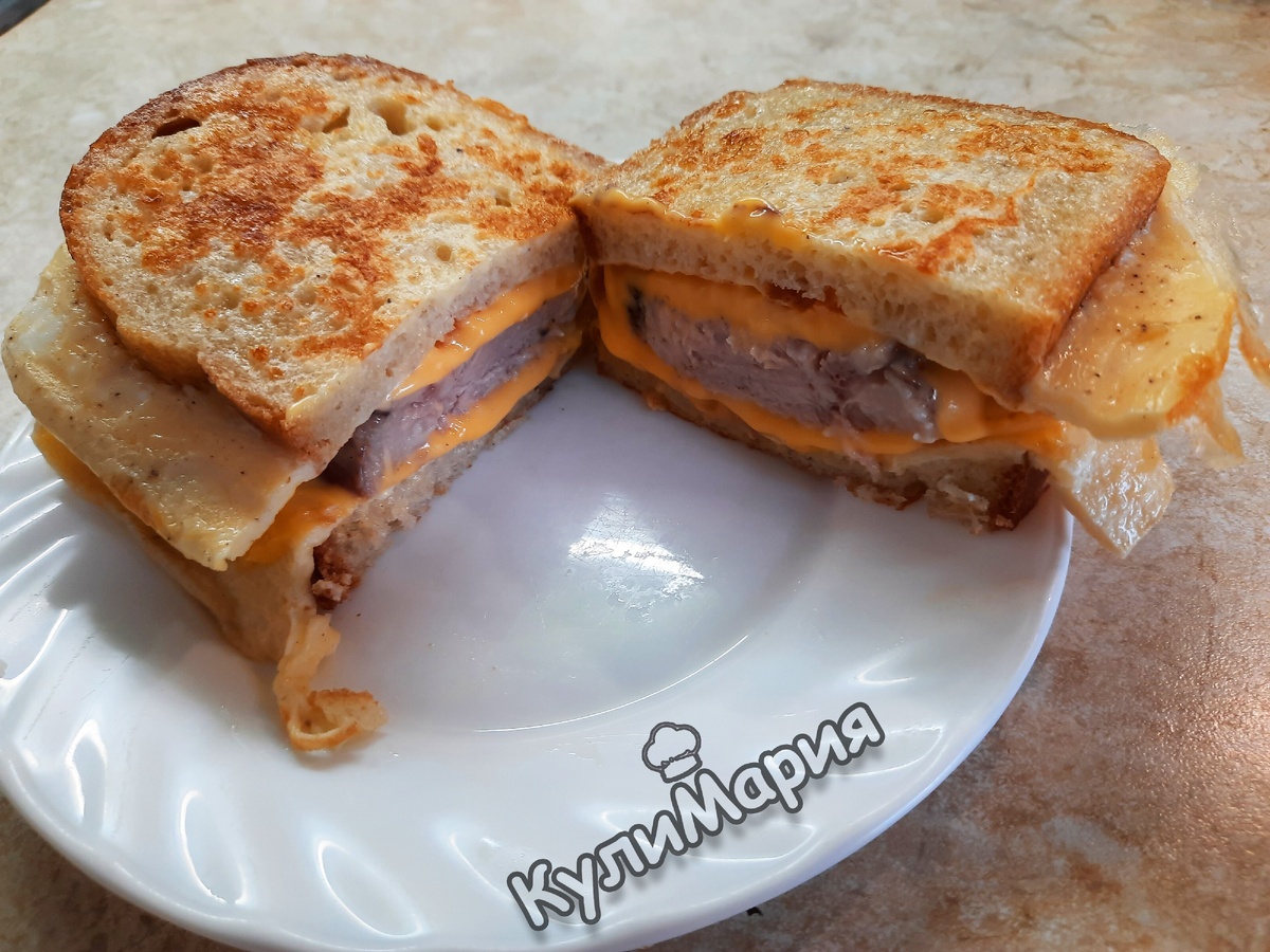 Готово. Достаем бутерброд на тарелку.
