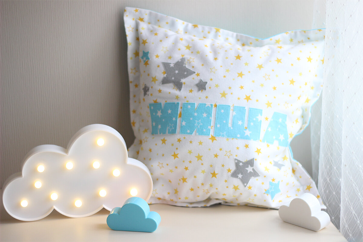 А в этом посте расскажу об одном из заказов. Нужно было сшить именную подушку для ребенка, буквально за день.