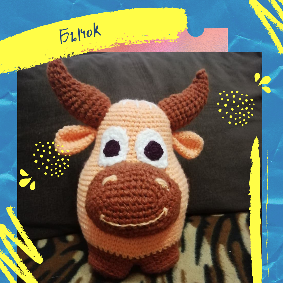 Приветствую, Вас дорогие друзья! А моё путешествие в мир амигуруми продолжается. Меня захватил такой азарт, что останавливаться я не собираюсь. Эти замечательные игрушки нравятся мне всё больше и больше. В силу своей не опытности в этом виде рукоделия я стараюсь пока выбирать мастер-классы более простые в исполнении. Сегодня я хочу познакомить Вас с мастер-классом по вязанию бычка. Автор мастер-класса Елена Белова. Часть 1. Часть 2. Очень доступное объяснение позволяет связать бычка даже новичку. А вот мой результат. Такие милые и забавные игрушки делают мою жизнь теплее и интересней. На мой взгляд любое проявление творчества приносит в жизнь радость. Творите, созидайте и делайте жизнь счастливей. Пишите в комментариях есть ли у Вас хобби и чем Вы увлекаетесь.