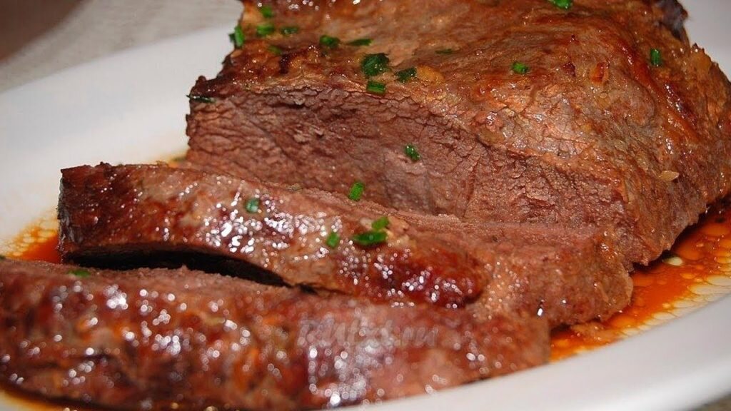 Мясо запекаем в духовке при температуре 180-200˚С., до образования коричневого цвета. Через каждые 10 минут обливаем кусок мяса соком и переворачиваем его.