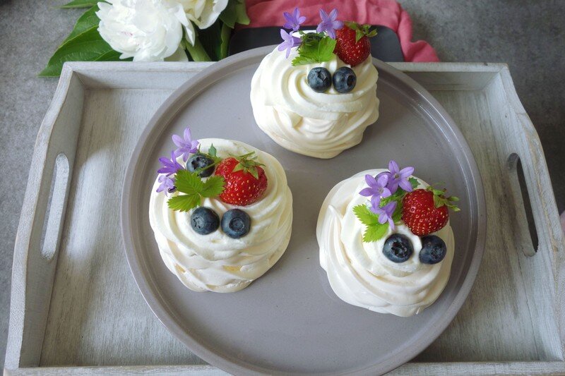 Сначала мы готовим все сырье и точно взвешиваем его. Мы можем предварительно нарисовать круги диаметром 8 см на бумаге для выпечки. Смажьте противень сливочным маслом и прижмите бумагу для выпечки к противню предварительно перевернутой стороной вниз. Разогрейте духовку до 150 ° C. В миске взбейте белки комнатной температуры со щепоткой соли. Предварительно натрите миску нарезанным лимоном (или смойте небольшим количеством уксуса и вылейте). Через 2 минуты взбивания белков на средней скорости поднимаем обороты и взбиваем еще 3 минуты, добавляя треть количества сахара каждую минуту. Взбиваем в одну сторону, чтобы не нарушить структуру белков. Через 3 минуты мы уже взбили весь сахар. Взбиваем на полную катушку последние 5 минут, после чего на венчике образуется твердый кончик. Посыпьте крахмалом и осторожно перемешайте лопаточкой несколько раз, опять в одном направлении, чтобы весь крахмал смешался с белками. Наконец, аккуратно размешайте в нескольких мазках лимонный сок (можно заменить винным уксусом). Заливаем смесь в кондитерский мешок с большим верхом. Делаем небольшие гнезда на противне, то есть делаем сначала дно, а потом вокруг стенок (оборачиваем дважды). Ставим в духовку, разогретую до 150 ° С (верхний и нижний нагрев). Сразу после вставки мы понижаем температуру до 120 ° С и сушим в течение 55 минут. После этого выключаем духовку, не открываем ее ни во время выпечки, ни даже после, только выключаем духовку и оставляем здесь до остывания. Только после того, как он остынет, мы его снимаем. Охлажденные безе заливаем взбитыми сливками с маскарпоне, желательно за два часа до подачи. Украсьте безе фруктами и подавайте в качестве отличного десерта.