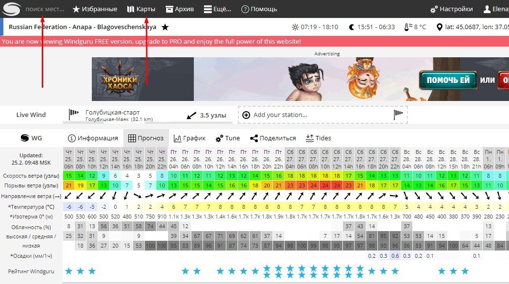 Желаем вам покорить кайт вместе с нами! https://yandex.ru/maps/-/CCUKQDgDpD Есть два очень удобных ресурса для прогноза ветра: windguru windyapp Оба эти сервиса можно использовать на смартфоне, но windyapp удобнее для смартфона, а windguru удобнее для компьютера. Каждый из сервисов доступен в бесплатной версии, но с сильно ограниченным функционалом. В бесплатной версии прогноз обновляется 1 раз в 4 часа. В windguru ограничен поиск спотов, а в windyapp ограничены источники прогнозов. Платные версии будут давать более точный прогноз, можно добавлять свои споты и т.д. Однако помните, синоптики ошибаются только один раз, но каждый день. Прогнозы не всегда соответствуют действительности. Редко, но иногда ошибаются на 100%, обещая ветер, которого нет. Просто ветер зависит от очень многих факторов. И из-за постоянных колебаний температур, влажности, засухи, давления, предсказать ветер очень сложно. Поэтому прогнозы дают лишь ориентиры. Это должно стать привычкой, что погода не предск