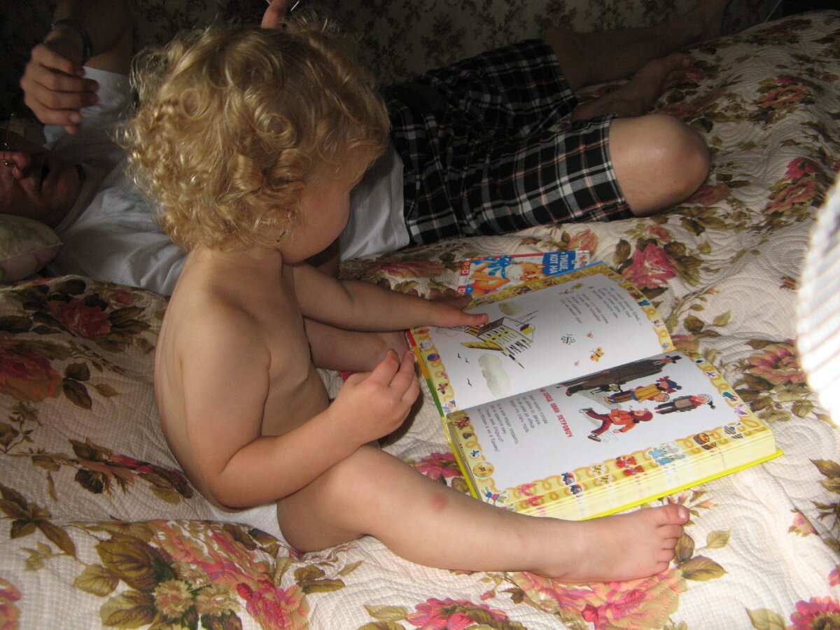 Читали мы Еве всегда)) Она настолько любила, когда я ей читала, что в три года только благодаря чтению мы наконец-то слезли с грудного вскармливания)) Просто я поставила ультиматум и она выбрала книгу))