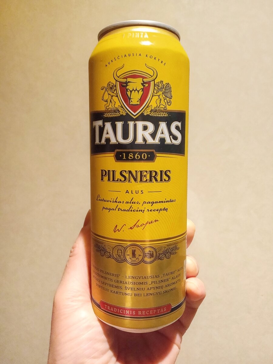 Прибалтика продолжает заваливать нас своим пивом, так что сегодня пробуем литовский пилзнер. Ну или то, что заявлено как пилзнер. А что там на самом деле, мы сейчас и узнаем. Tauras - российская, затем советская, а позже литовская пивоварня, основанная в 1860 году местными предпринимателями Абелем Соловейчиком и Исер Бергом (коренные литовцы, судя по ФИО) на окраине города Вильна (ныне Вильнюс). За всю свою историю пивоварня довольно неплохо себя чувствовала и развивалась. В 2001 году вошла в состав литовского пивоваренного завода "Kalnapilis", а в 2006 году производство было перенесено из Вильнюса в Паневежис. Кстати, я уже пробовал продукцию пивзавода Kalnapilis, а именно лагер и пшеничку - вполне неплохие экземпляры, так что есть надежда, что и пилзнер удастся. Однако проверим. Описание пива с сайта производителя: Tauras Pilsneris - пиво с легчайшим вкусом. Изготавливается из ячменного солода, хмеля, дрожжей. Пиво Pilsner обладает легким хмелевым ароматом и легкой горчинкой. ТТХ: Ал