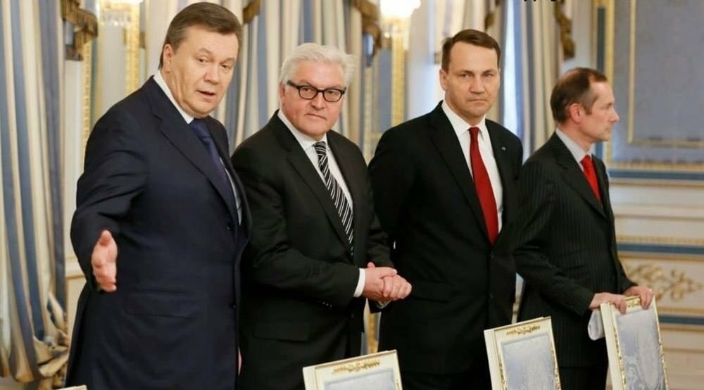 Именно в присутствии министров иностранных дел Польши, Германии и Франции главы трех оппозиционных партий и президент Украины Виктор Янукович подписали