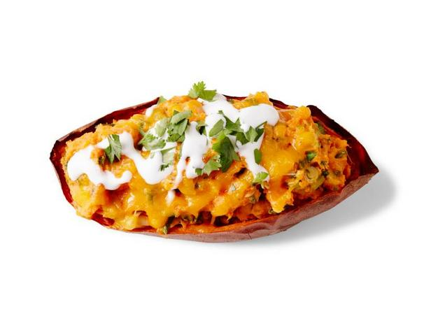 Дважды запечённый батат в мексиканском стиле можно приготовить как для гарнира на праздничный стол, так и в качестве закуски для домашних вечеринок. Из запечённых в духовке и разрезанных пополам клубней батата выскабливается мякоть, которая затем смешивается со сметаной, цедрой лайма, жареными перцами поблано, зеленью и соусом адобо и выкладывается обратно в оболочки из кожуры батата. Сладость