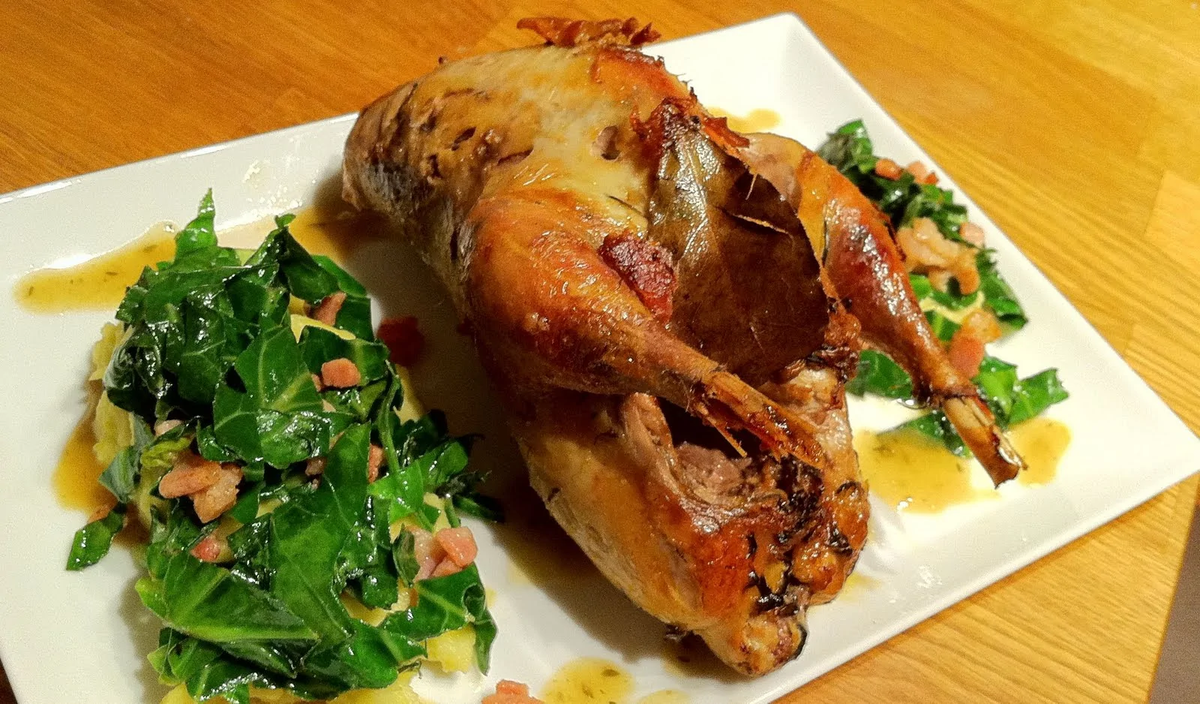 Готовить глухаря лучше всего долгим методом томления. Тогда вы получите сочное, аппетитное и весьма сытное мясо. Например, как в этом рецепте с простыми приправами — луком, горчичкой, шпиком, перцем и солью.