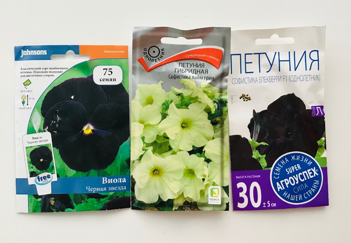 Моя тяга к готическому чёрному никуда не делась, поэтому буду пытаться вырастить черную виолу и петунию. На фотографиях тех, кто уже выращивал подобное, эти цветы выглядят весьма привлекательно и не отдают в другие цвета, как это у меня было с чёрными розами, которые в реальности оказались даже не бордовыми, а темно-красными.