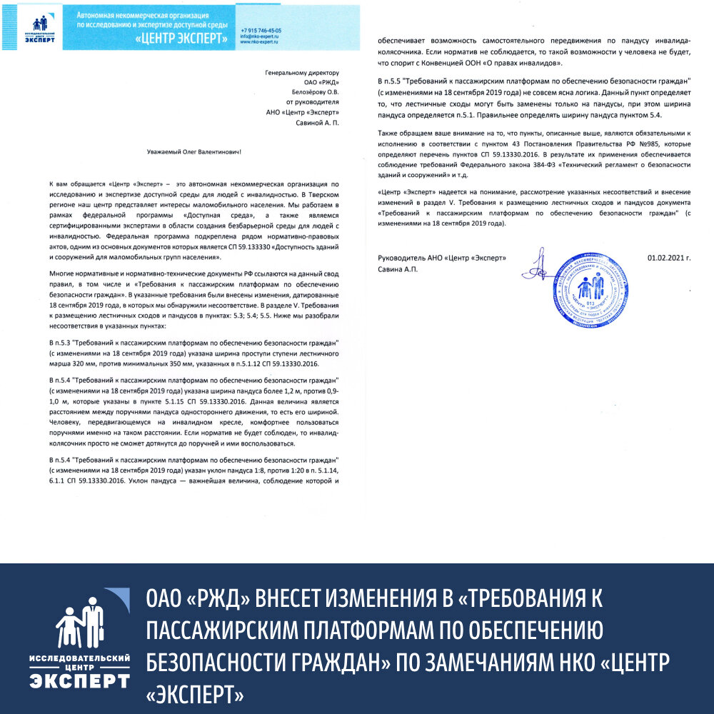 ✅ Сотрудниками «Центра «Эксперт» были выявлены ошибки в разделе V «Требований к пассажирским платформам по обеспечению безопасности граждан»(с изменениями на 18 сентября 2019 года), которые могли бы привести к печальным последствиям для людей с инвалидностью.