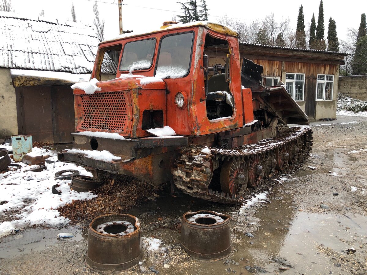 Там, где раньше были, по всей видимости, гаражи, стояла брошенная, частично разграбленная мародерами техника. Но некоторым экземплярам до сих пор удалось каким-то чудом уцелеть. А между тем, им лет 50, как минимум.