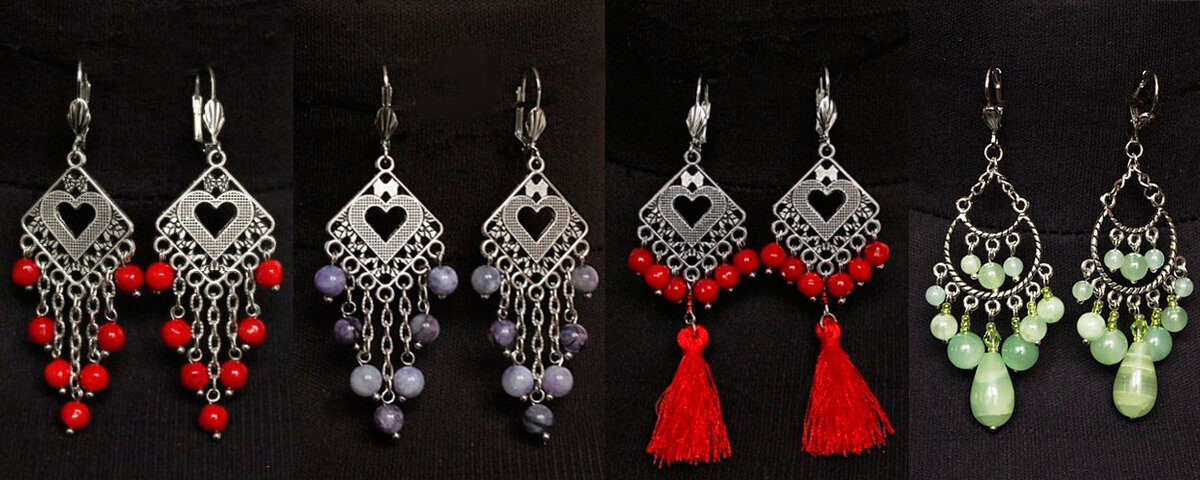 Есть такая сказка, где нужно было девушке явиться к царю «ни голой ни одетой». И завернулась она в рыболовную сеть. При чем тут бахрома? Это «живая» деталь, обычно одежды. Она колеблется при дыхании, ходьбе, жестикуляции, добавляя подтекст, второй план, эмоции, открывая немного, чуть-чуть, то, что должно быть скрыто. Напоминает листья дерева на ветру, перья птицы с расправленными крыльями, лохмотья актера в роли нищего, непобежденную «драную» кошку, индейца, хиппи… Можно сделать любую одежду с бахромой, а также обувь, сумку, шляпку… но не все сразу, чтоб уж совсем на гориллу не смахивать. А еще можно сделать с бахромой украшения, о чем и расскажем подробнее. В роли «бахромы» будут цепочки или пины с бусинкой, подвешенные на коннекторы с большим количеством петелек. Ну, а сами коннекторы можно подвесить на швензы (получатся серьги), на шнурок (получится подвеска), на бусы (получится колье). Сделать подвески можно разными способами. Самое простое – надеть бусины на пин или несколько пино