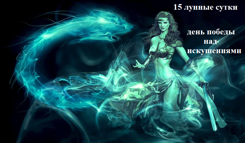 Поэтому в 15 лунные сутки не рекомендуется поддаваться СВОИ СЛАБОСТЯМ, чтобы не упустить ВОЗМОЖНОСТЬ использовать ШАНС «закинуть удочку своего желания» в астральный план.