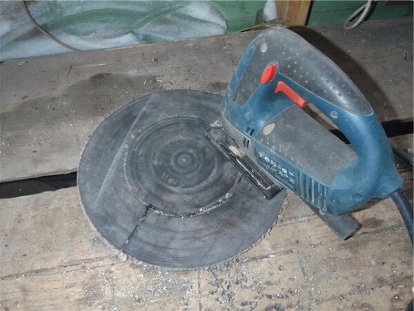 изготовления шнека использовать резиновую ленту от транспортера толщиной 10 мм и длиной 1,5 м . Из резиновой полосы необходимо вырезать кольца в количестве 4 штук с диаметром 28 см. Детали легко вырезаются с помощью электрического лобзика.
