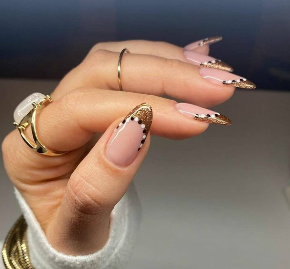 Желаете обезоружить всех соперниц? Тогда выбирайте маникюр со сложным декором. Чтобы он был уместен и в повседневные дни, остановитесь на спокойной основе. После украшайте ее богато, как только можно. При этом оформляем ноготки в одном стиле, чтобы на пальчиках была гармония, а не хаос.
